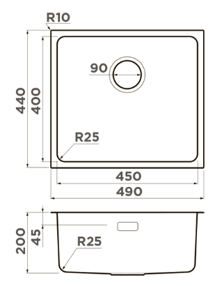 i Расстояние от дна до верхней кромки чаши мойки. Оптимальная глубина — 15-18 см. Чем глубже мойка, тем меньше брызг попадет наружу.
