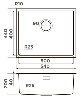 i Расстояние от дна до верхней кромки чаши мойки. Оптимальная глубина — 15-18 см. Чем глубже мойка, тем меньше брызг попадет наружу.