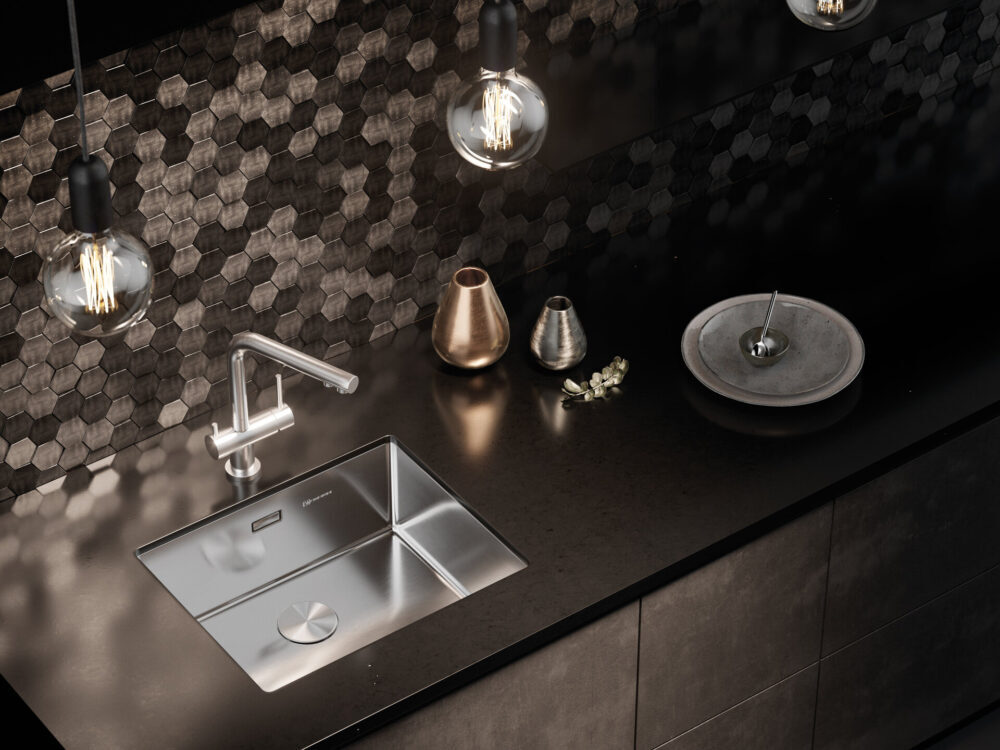 i Расстояние от дна до верхней кромки чаши мойки. Оптимальная глубина — 15-18 см. Чем глубже мойка, тем меньше брызг попадет наружу.