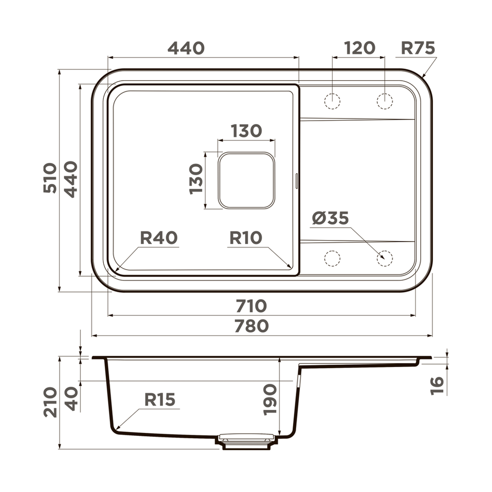 i Расстояние от дна до верхней кромки чаши мойки. Оптимальная глубина — 15-18 см. Чем глубже мойка, тем меньше брызг попадет наружу.