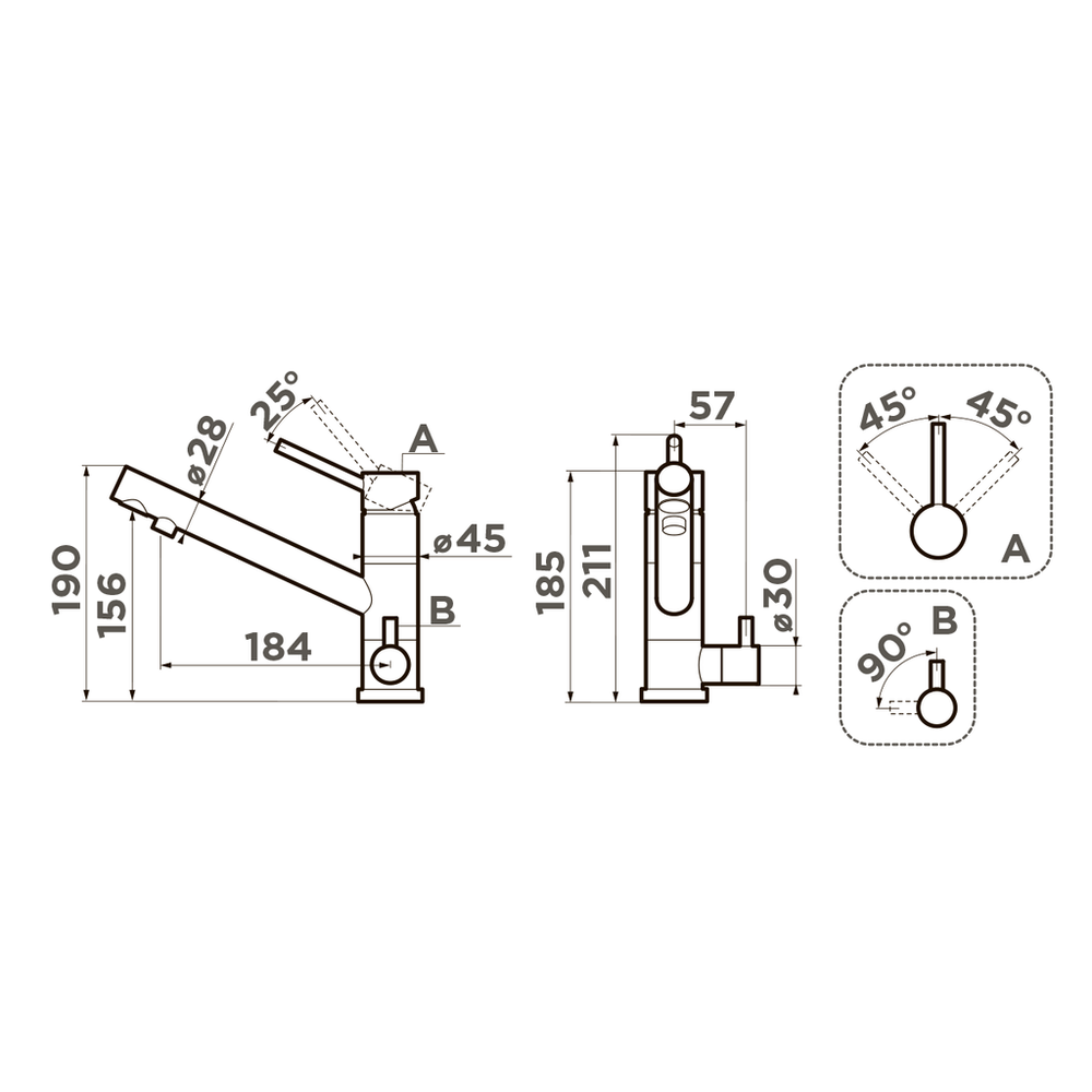 i Встроенная в кран насадка на длинном гибком шланге с металлической оплеткой. Насадки с кнопкой могут переключать обычный излив воды на душ.