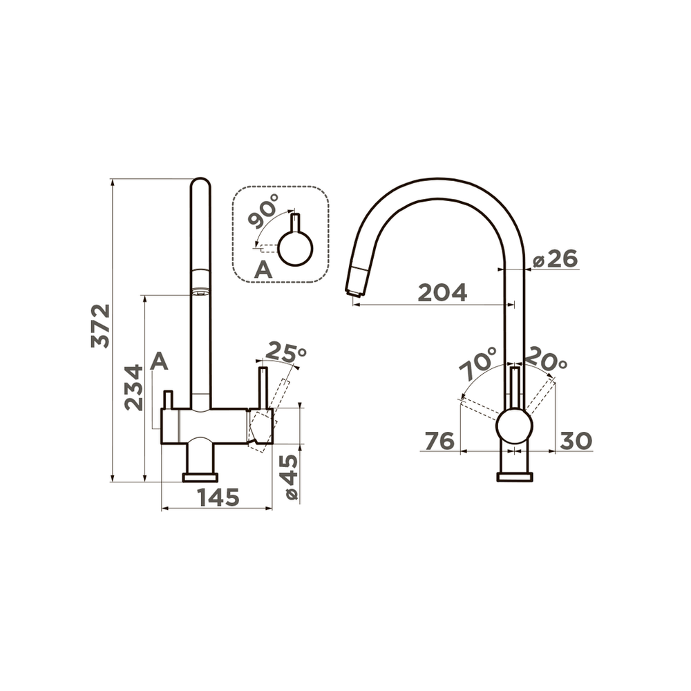 i Встроенная в кран насадка на длинном гибком шланге с металлической оплеткой. Насадки с кнопкой могут переключать обычный излив воды на душ.
