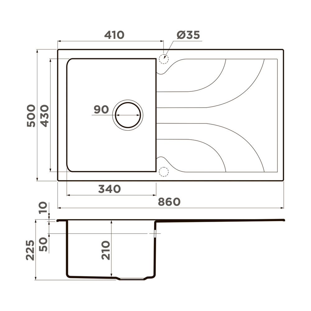 i Расстояние от дна до верхней кромки чаши мойки. Оптимальная глубина — 15-18 см. Чем глубже мойка, тем меньше брызг попадет наружу.