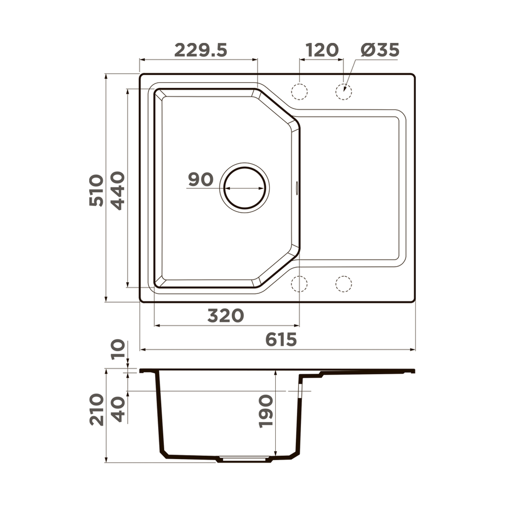 i Расстояние от дна до верхней кромки чаши мойки. Оптимальная глубина — 15-18 см. Чем глубже мойка, тем меньше брызг попадет наружу.