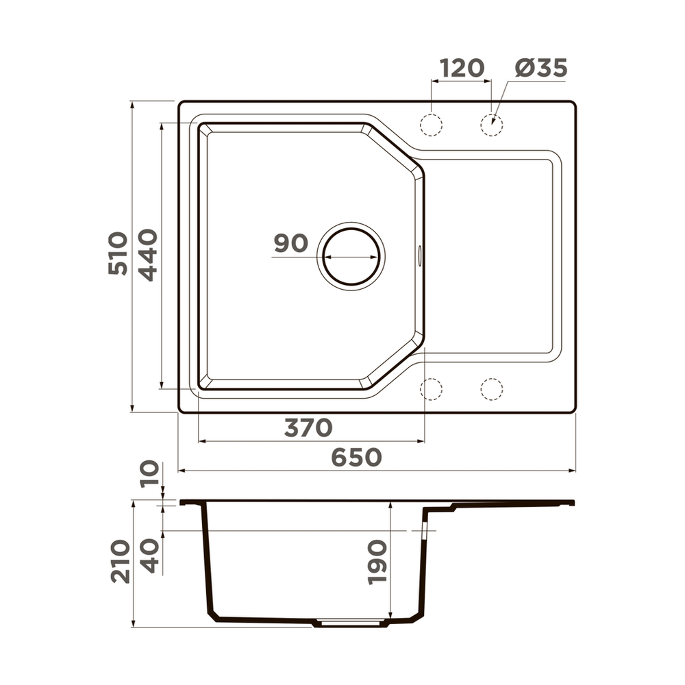 i Расстояние от дна до верхней кромки чаши мойки. Оптимальная глубина — 15-18 см. Чем глубже мойка, тем меньше брызг попадет наружу.