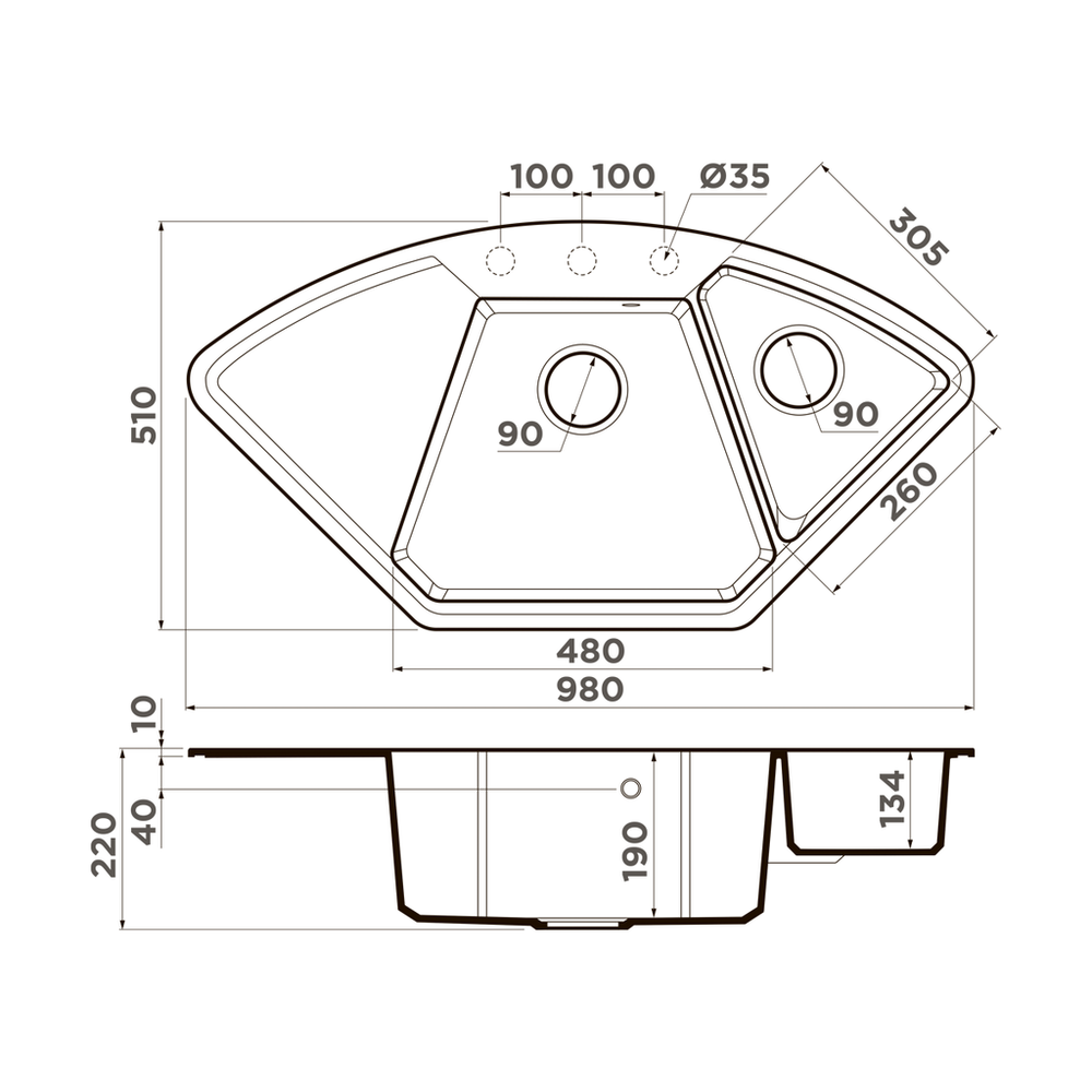 i Определяет расположение крыла мойки. Выбирая вариант исполнения мойки, нужно учитывать особенности кухонного гарнитура.