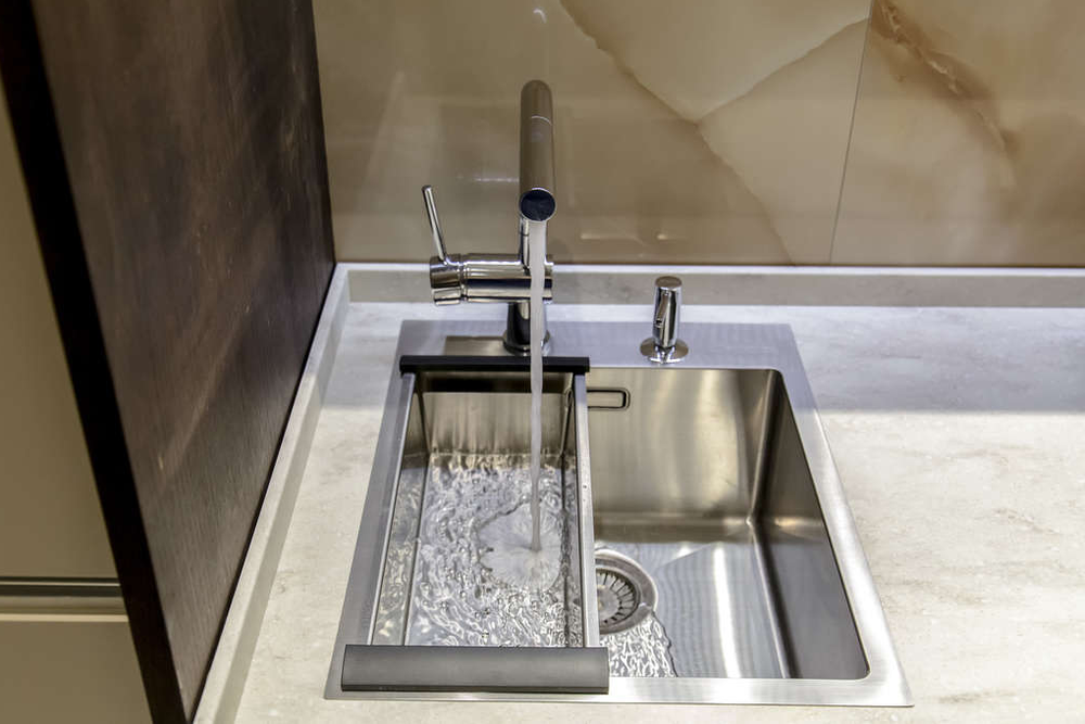 i Кроме основной чаши у кухонной мойки может быть одна или две дополнительные чаши меньшего объема. В одну из них можно встроить измельчитель.