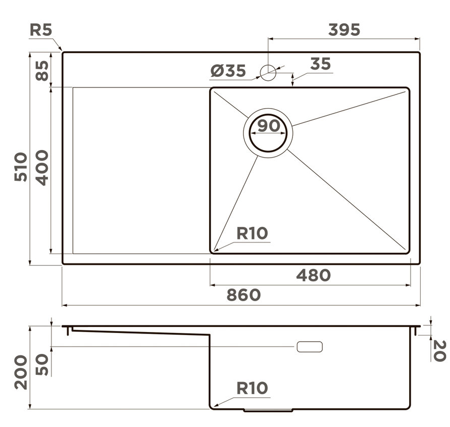 Omoikiri Akisame 86-IN-R Side , мойка, нержавеющая сталь, чаша справа
