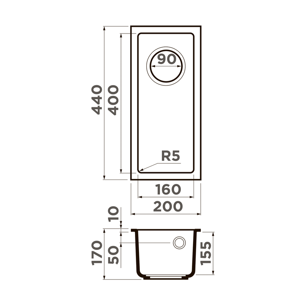i Расстояние от дна до верхней кромки чаши мойки. Оптимальная глубина — 15-18 см. Чем глубже мойка, тем меньше брызг попадет наружу.