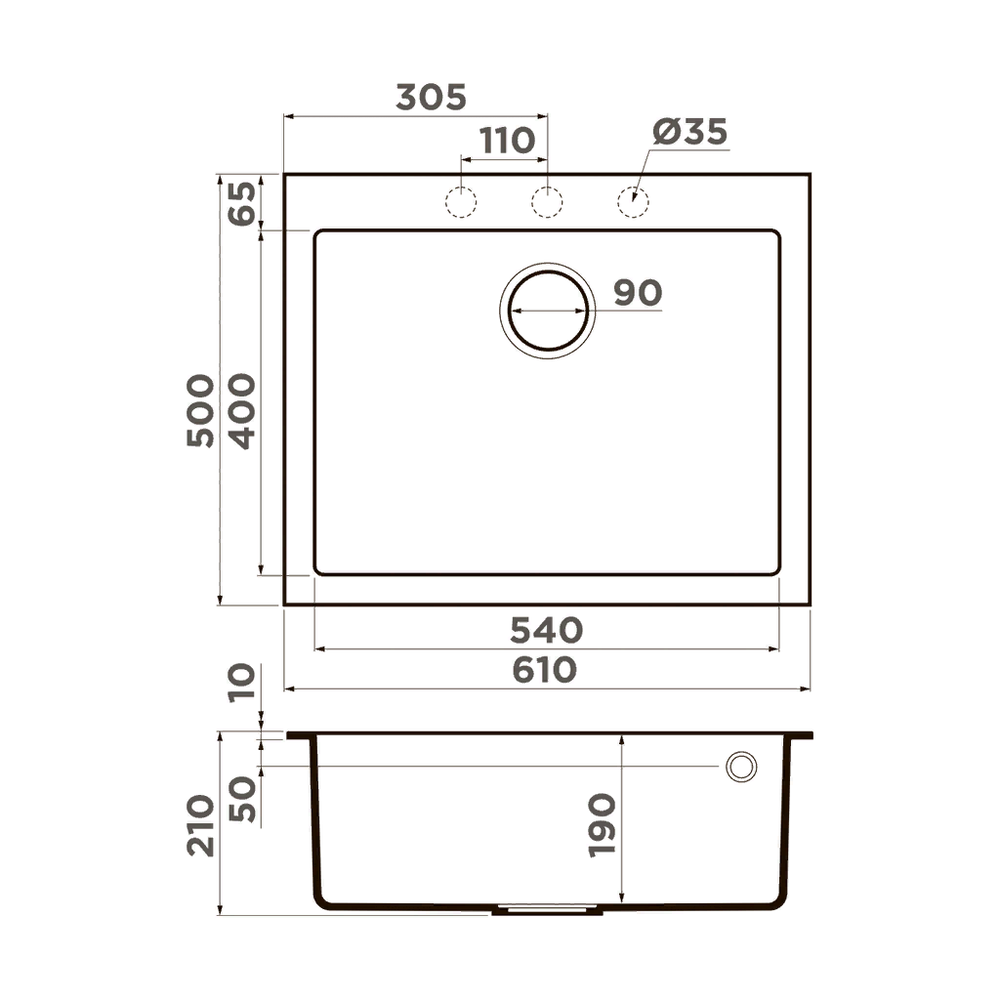 i Расстояние от дна до верхней кромки чаши мойки. Оптимальная глубина — 15-18 см. Чем глубже мойка, тем меньше брызг попадет наружу.