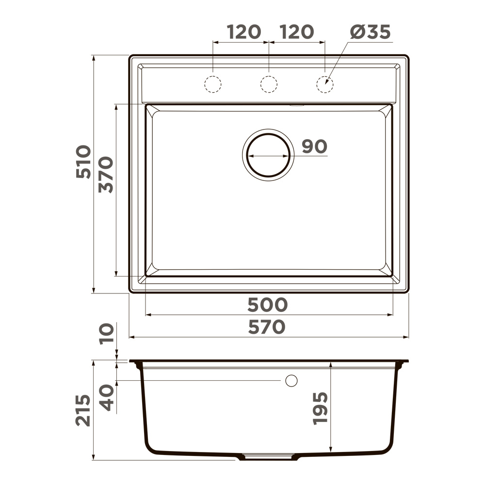 i Расстояние от дна до верхней кромки чаши мойки. Оптимальная глубина — 15-18 см. Чем глубже мойка, тем меньше брызг попадет наружу.