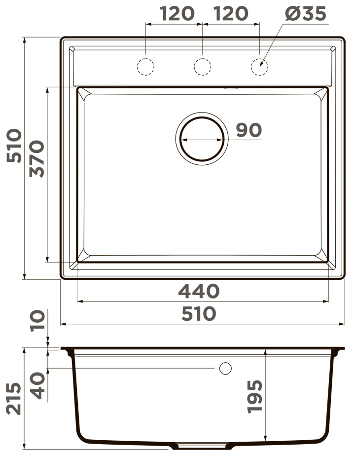 i Расстояние от дна до верхней кромки чаши мойки. Оптимальная глубина — 15-18 см. Чем глубже мойка, тем меньше брызг попадет наружу.
