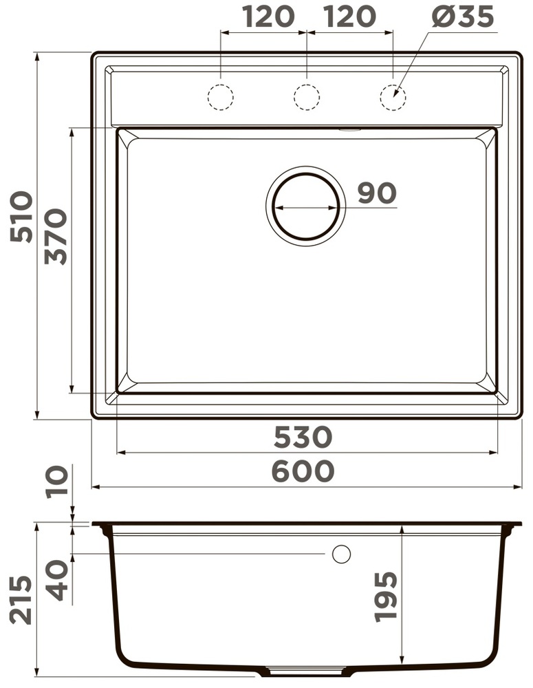 i Расстояние от дна до верхней кромки чаши мойки. Оптимальная глубина — 15-18 см. Чем глубже мойка, тем меньше брызг попадет наружу.