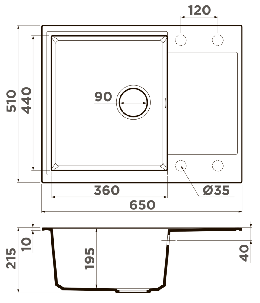 i Расстояние от дна до верхней кромки чаши мойки. Оптимальная глубина — 15-18 см. Чем глубже мойка, тем меньше брызг попадет наружу.