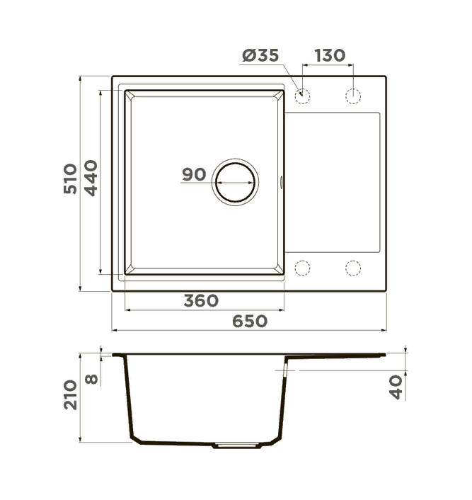 i Расстояние от дна до верхней кромки чаши мойки. Оптимальная глубина — 15-18 см. Чем глубже мойка, тем меньше брызг попадет наружу.