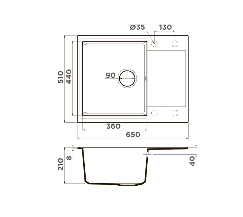 i Расстояние от дна до верхней кромки чаши мойки. Оптимальная глубина — 15-18 см. Чем глубже мойка, тем меньше брызг попадет наружу.