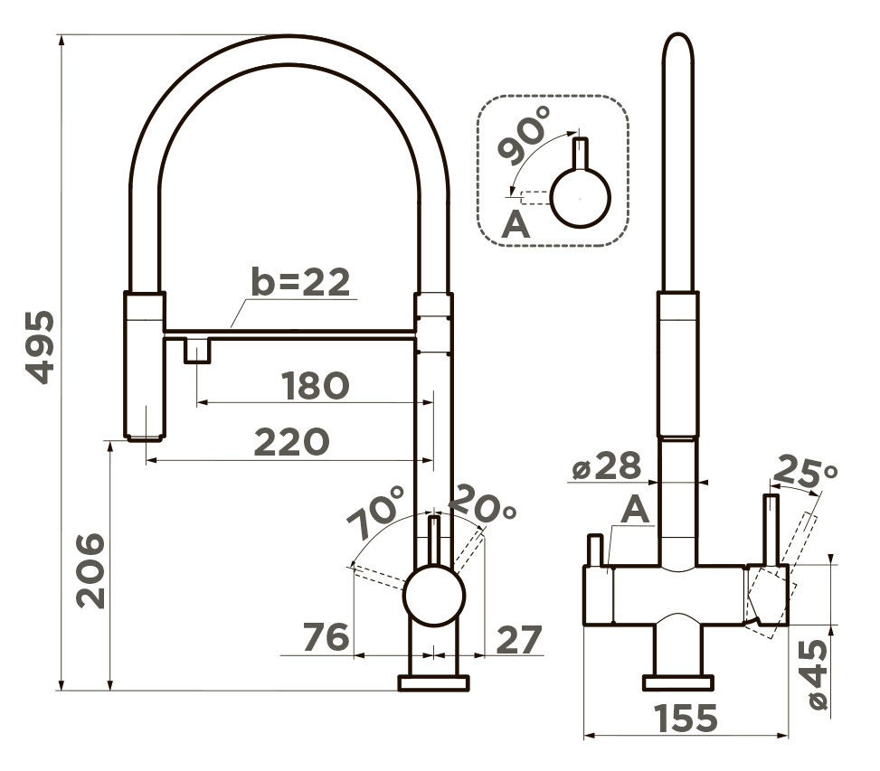 Omoikiri Kanto-GM-BL, смеситель, вороненая сталь/черный гибкий шланг