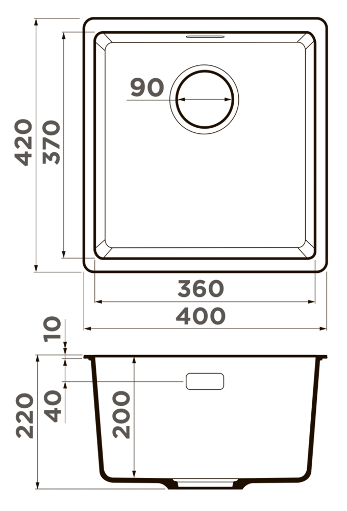 i Расстояние от дна до верхней кромки чаши мойки. Оптимальная глубина — 15-18 см. Чем глубже мойка, тем меньше брызг попадет наружу.