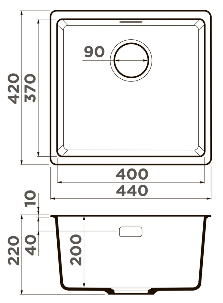 i Расстояние от дна до верхней кромки чаши мойки. Оптимальная глубина — 15-18 см. Чем глубже мойка, тем меньше брызг попадет наружу.