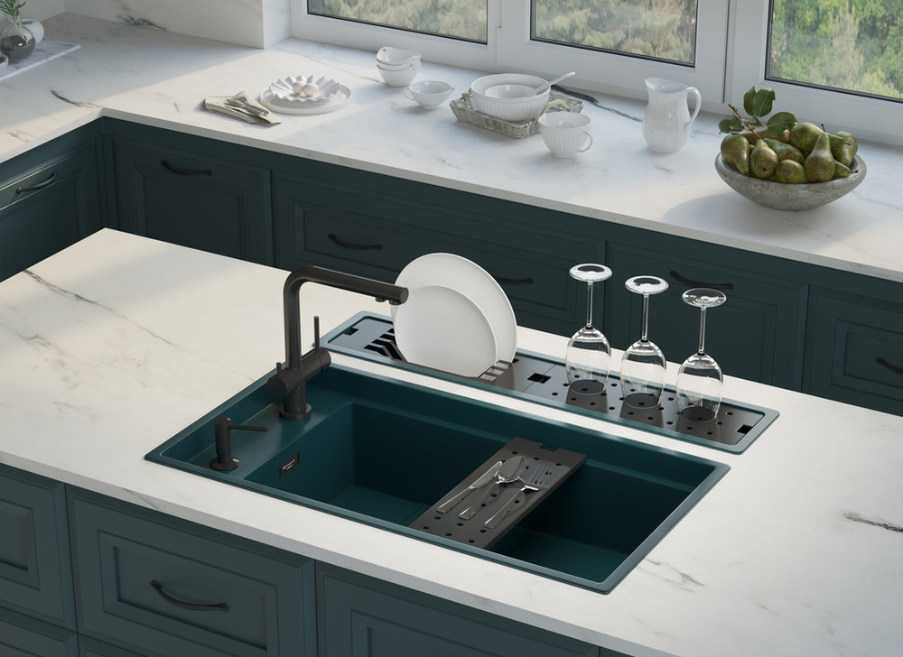 i Кроме основной чаши у кухонной мойки может быть одна или две дополнительные чаши меньшего объема. В одну из них можно встроить измельчитель.