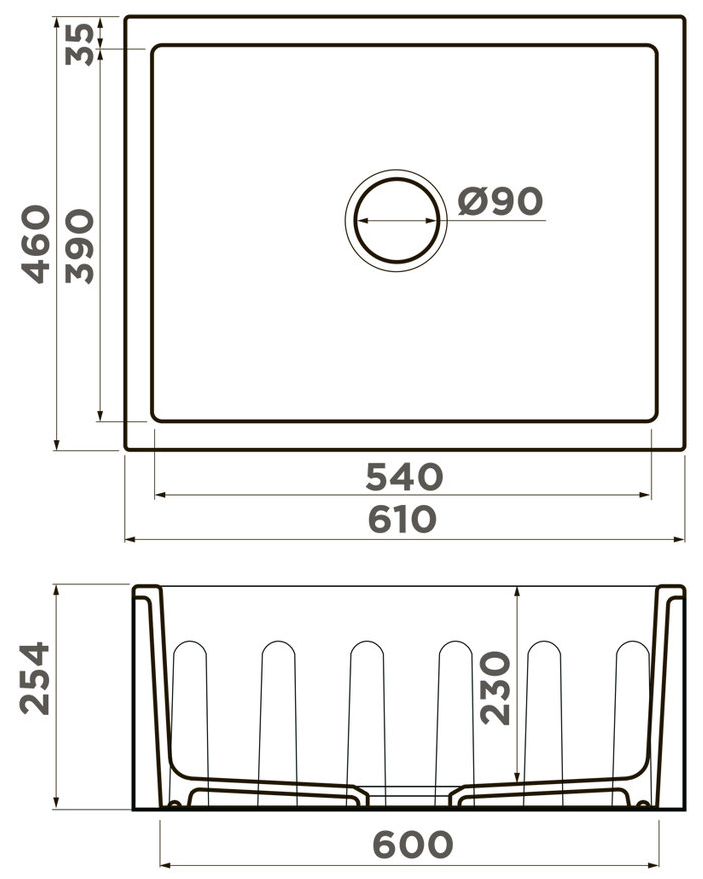 i Расстояние от дна до верхней кромки чаши мойки. Оптимальная глубина — 15-18 см. Чем глубже мойка, тем меньше брызг попадет наружу.