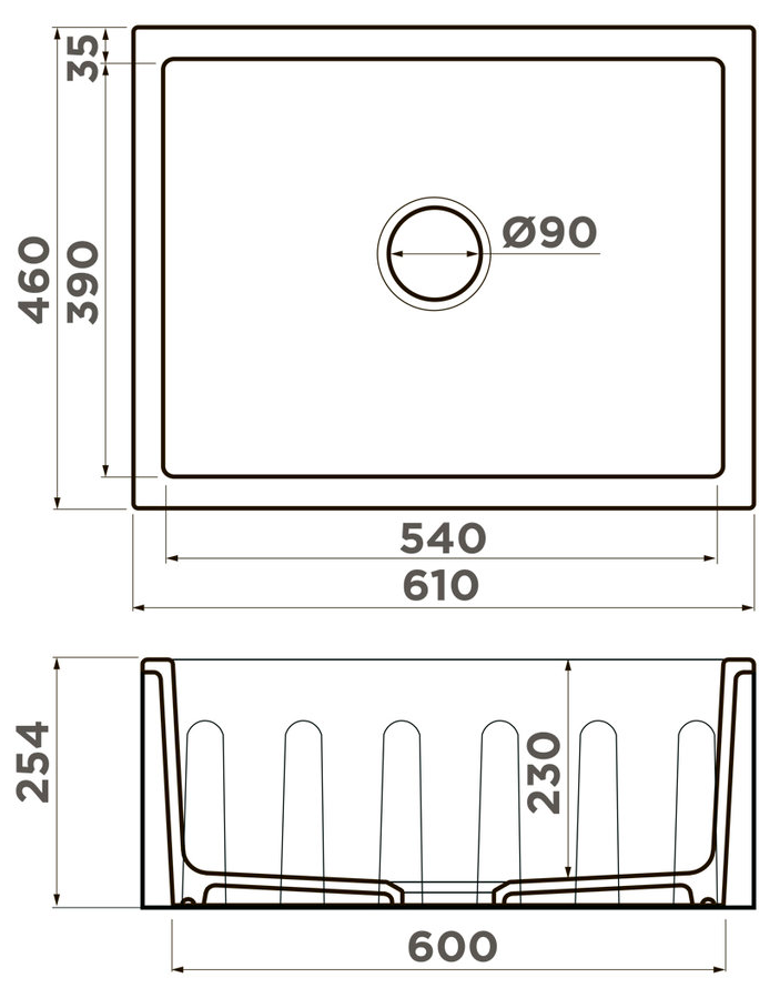 i Расстояние от дна до верхней кромки чаши мойки. Оптимальная глубина — 15-18 см. Чем глубже мойка, тем меньше брызг попадет наружу.