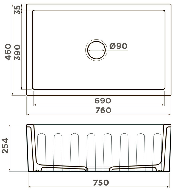 i Расстояние от дна до верхней кромки чаши мойки. Оптимальная глубина — 15-18 см. Чем глубже мойка, тем меньше брызг попадет наружу.