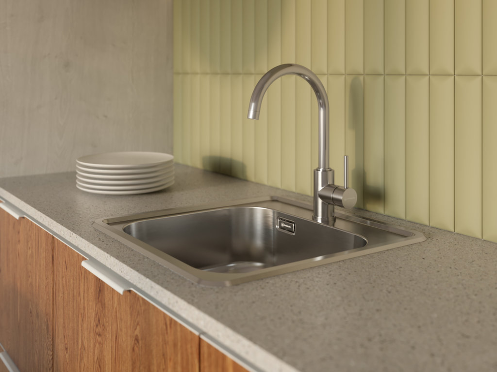 i Основной материал, из которого изготовлен корпус кухонной мойки или смесителя.