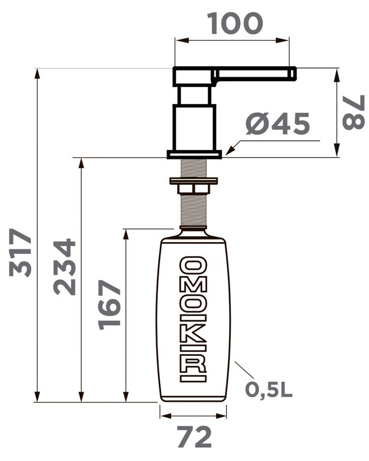 Omoikiri OM-04-GB, дозатор для моющего средства, графит