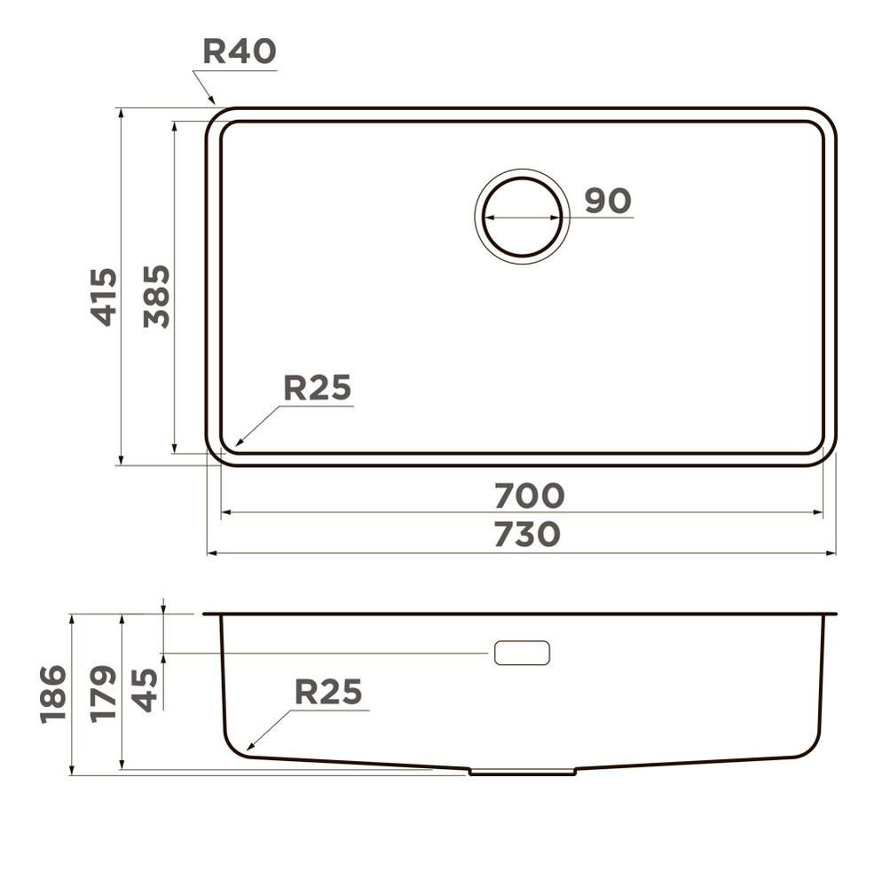 i Расстояние от дна до верхней кромки чаши мойки. Оптимальная глубина — 15-18 см. Чем глубже мойка, тем меньше брызг попадет наружу.