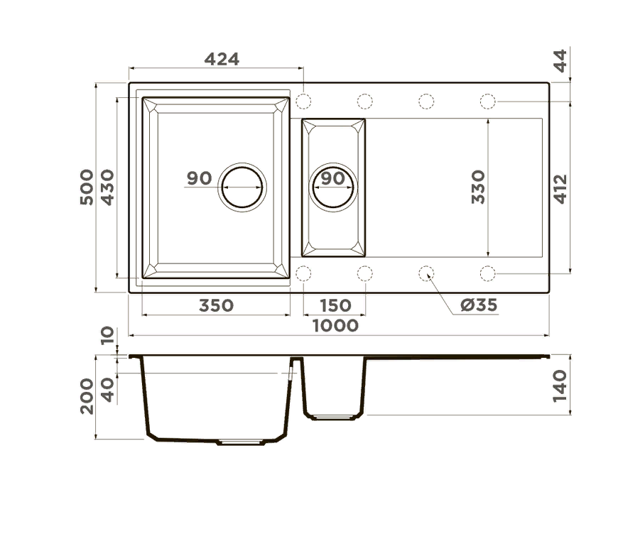 i Расстояние от дна до верхней кромки чаши мойки. Оптимальная глубина — 15-18 см. Чем глубже мойка, тем меньше брызг попадет наружу.