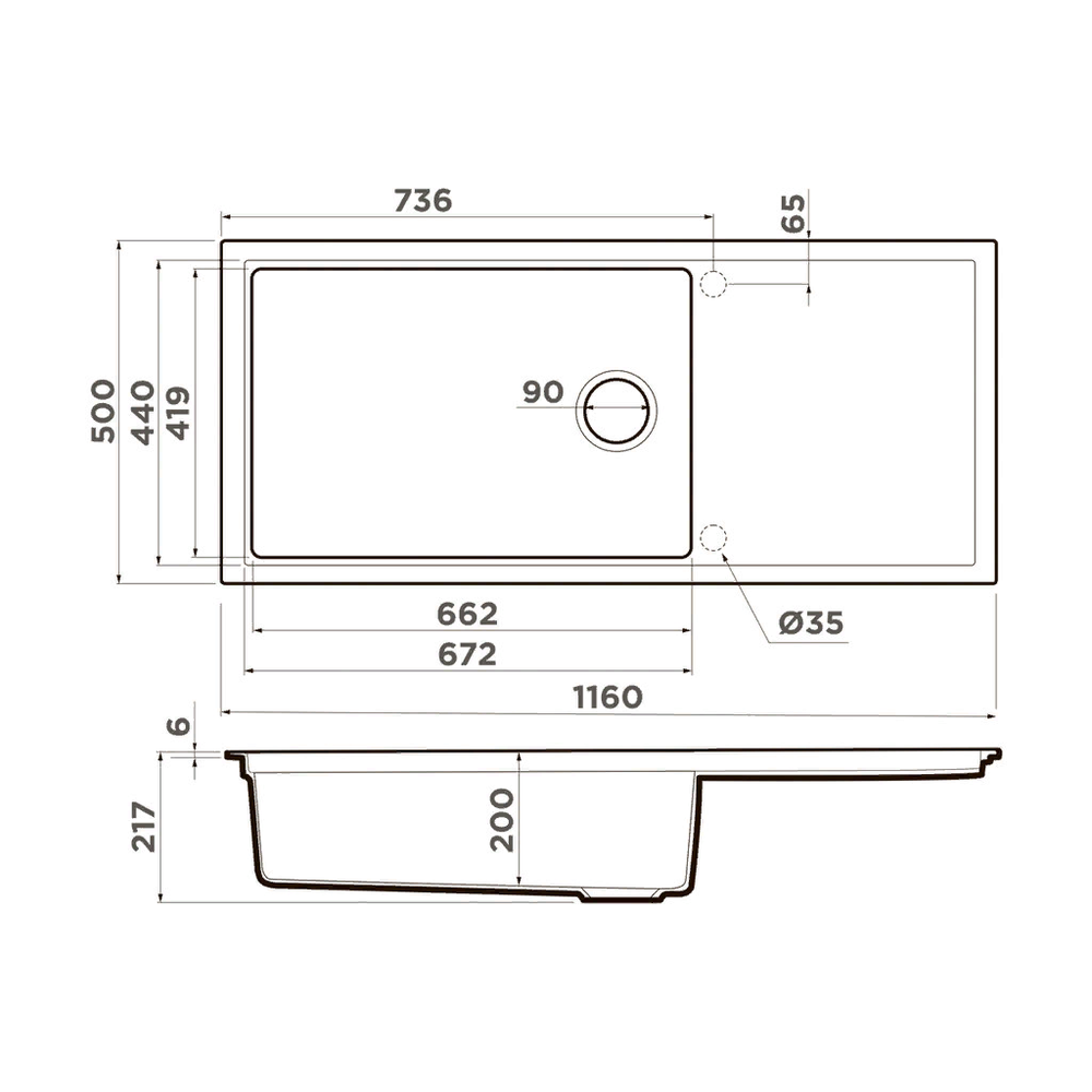 i Расстояние от дна до верхней кромки чаши мойки. Оптимальная глубина — 15-18 см. Чем глубже мойка, тем меньше брызг попадет наружу.