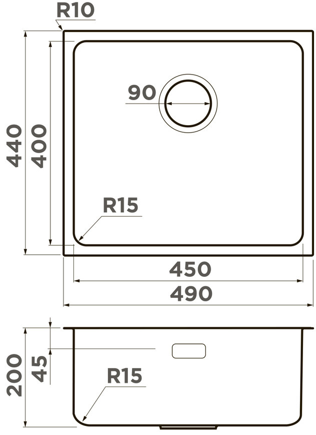 i Расстояние от дна до верхней кромки чаши мойки. Оптимальная глубина — 15-18 см. Чем глубже мойка, тем меньше брызг попадет наружу.
