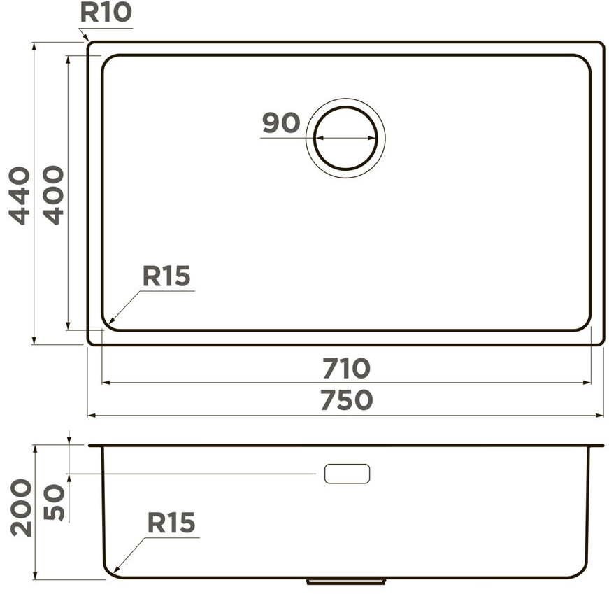 i Расстояние от дна до верхней кромки чаши мойки. Оптимальная глубина — 15-18 см. Чем глубже мойка, тем меньше брызг попадет наружу.