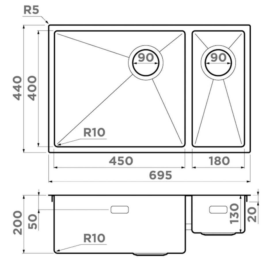i Расстояние от дна до верхней кромки чаши мойки. Оптимальная глубина — 15-18 см. Чем глубже мойка, тем меньше брызг попадет наружу.