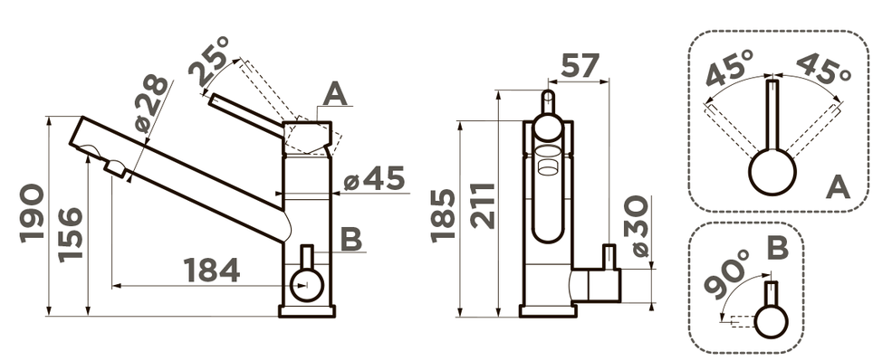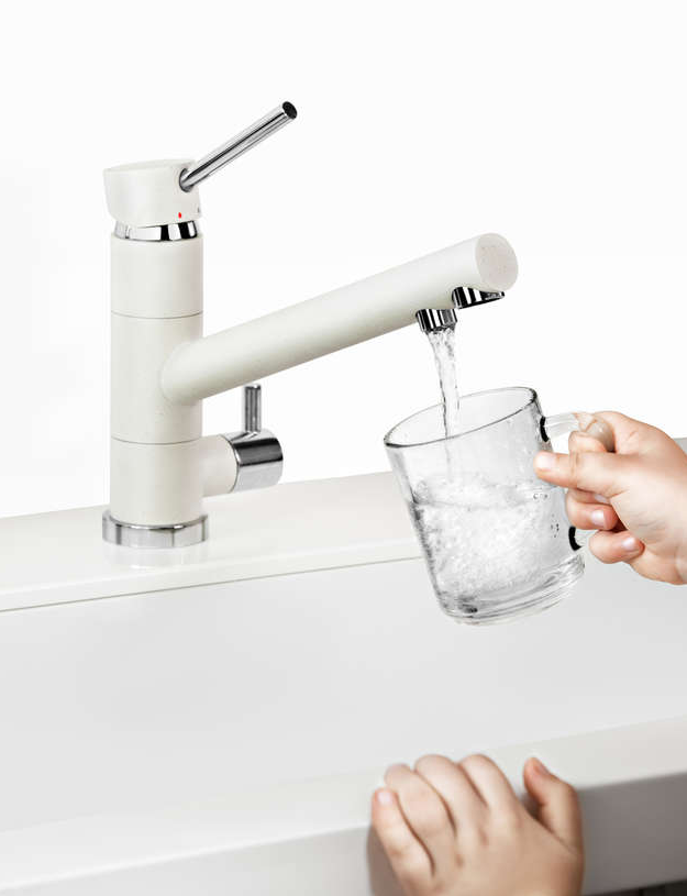 i Встроенная в кран насадка на длинном гибком шланге с металлической оплеткой. Насадки с кнопкой могут переключать обычный излив воды на душ.