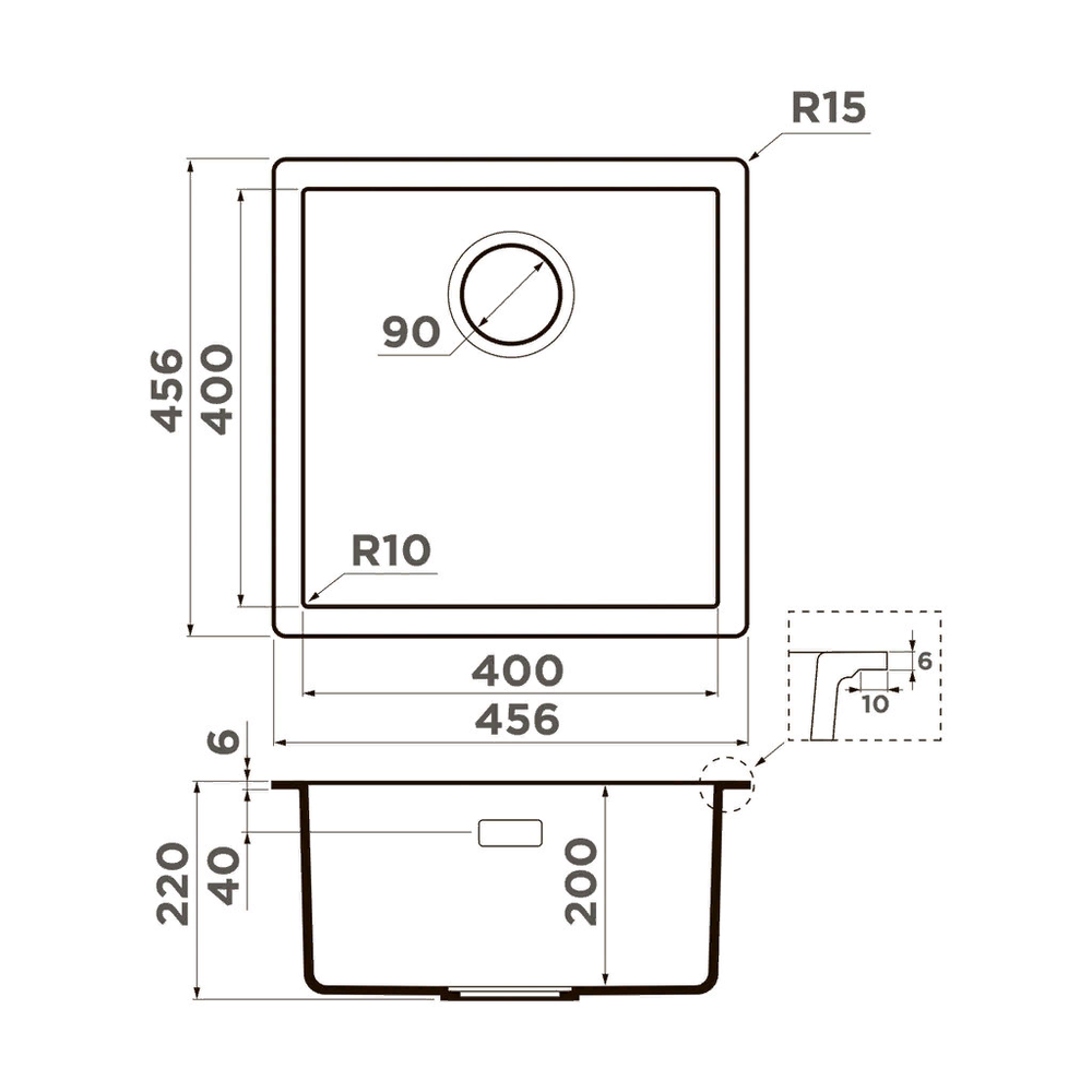 i Расстояние от дна до верхней кромки чаши мойки. Оптимальная глубина — 15-18 см. Чем глубже мойка, тем меньше брызг попадет наружу.
