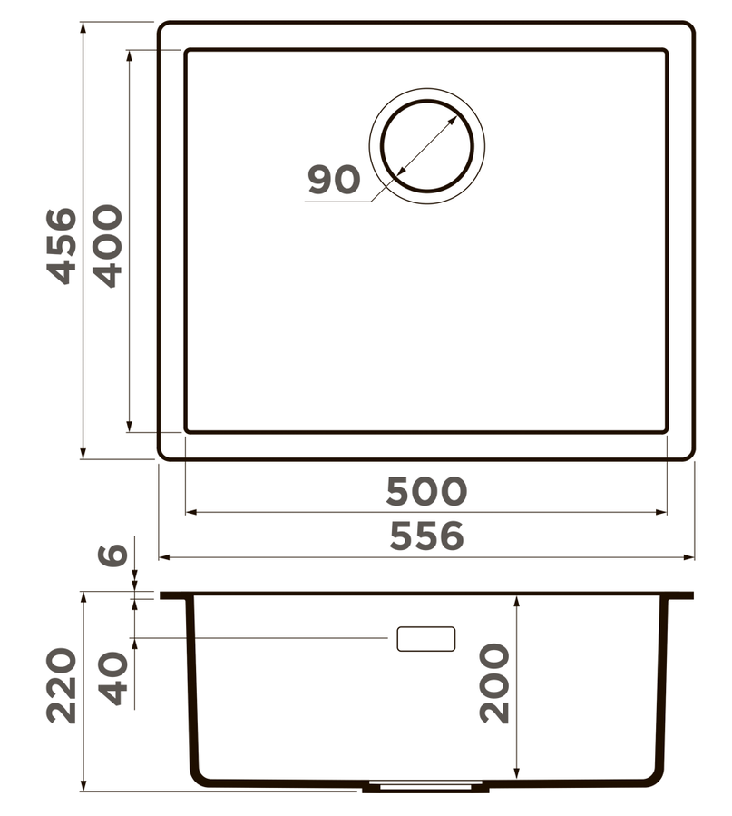 i Расстояние от дна до верхней кромки чаши мойки. Оптимальная глубина — 15-18 см. Чем глубже мойка, тем меньше брызг попадет наружу.