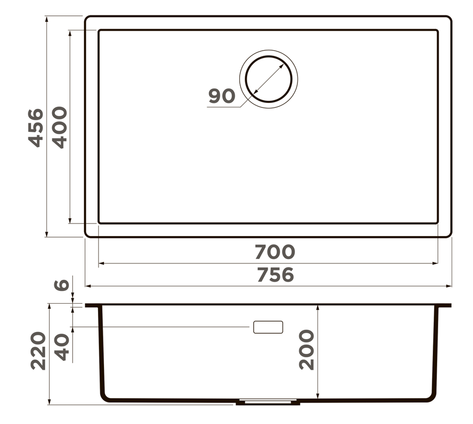 i Расстояние от дна до верхней кромки чаши мойки. Оптимальная глубина — 15-18 см. Чем глубже мойка, тем меньше брызг попадет наружу.