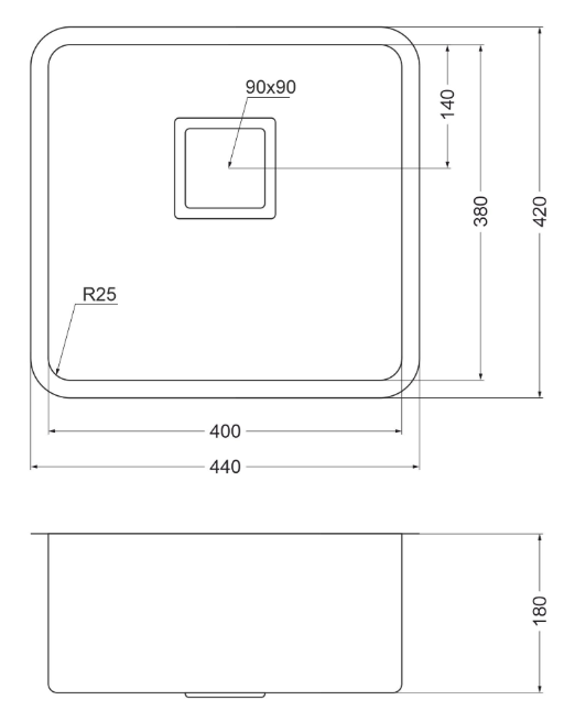 i Расстояние от дна до верхней кромки чаши мойки. Оптимальная глубина — 15-18 см. Чем глубже мойка, тем меньше брызг попадет наружу.