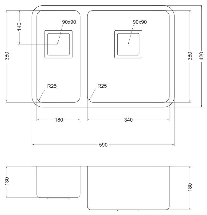 i Расстояние от дна до верхней кромки чаши мойки. Оптимальная глубина — 15-18 см. Чем глубже мойка, тем меньше брызг попадет наружу.