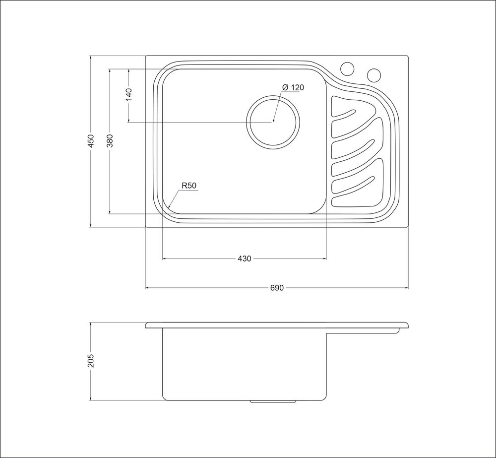 Oulin OL-327L(F&P), мойка, нержавеющая сталь