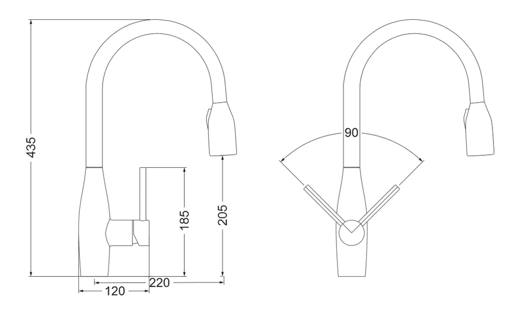 i Встроенная в кран насадка на длинном гибком шланге с металлической оплеткой. Насадки с кнопкой могут переключать обычный излив воды на душ.