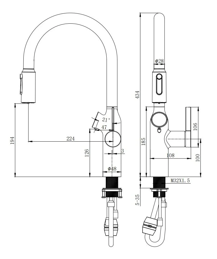 i Встроенная в кран насадка на длинном гибком шланге с металлической оплеткой. Насадки с кнопкой могут переключать обычный излив воды на душ.