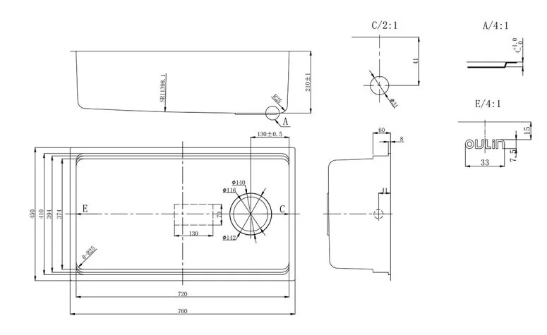 Oulin OL-EH201M, мойка, нержавеющая сталь сатин