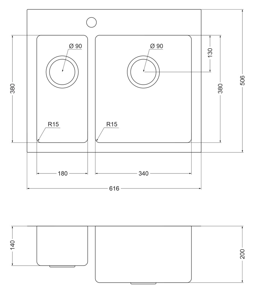 i Расстояние от дна до верхней кромки чаши мойки. Оптимальная глубина — 15-18 см. Чем глубже мойка, тем меньше брызг попадет наружу.