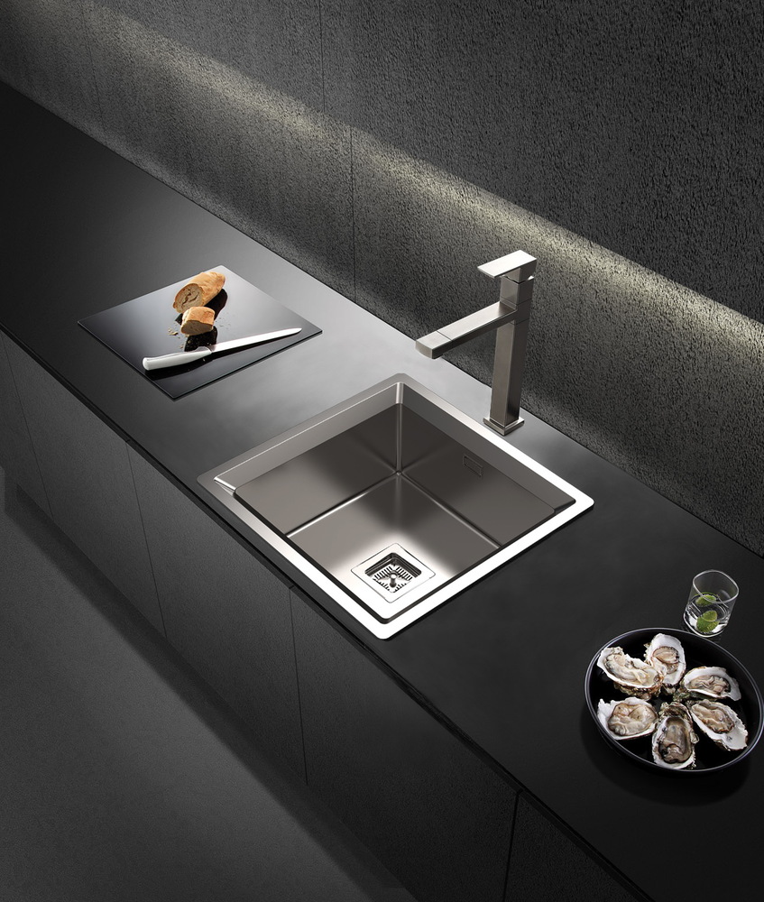 i Расстояние от дна до верхней кромки чаши мойки. Оптимальная глубина — 15-18 см. Чем глубже мойка, тем меньше брызг попадет наружу.