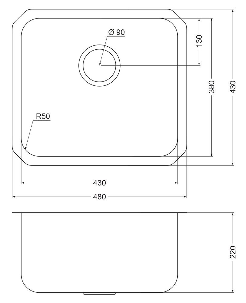 i Расстояние от дна до верхней кромки чаши мойки. Оптимальная глубина — 15-18 см. Чем глубже мойка, тем меньше брызг попадет наружу.