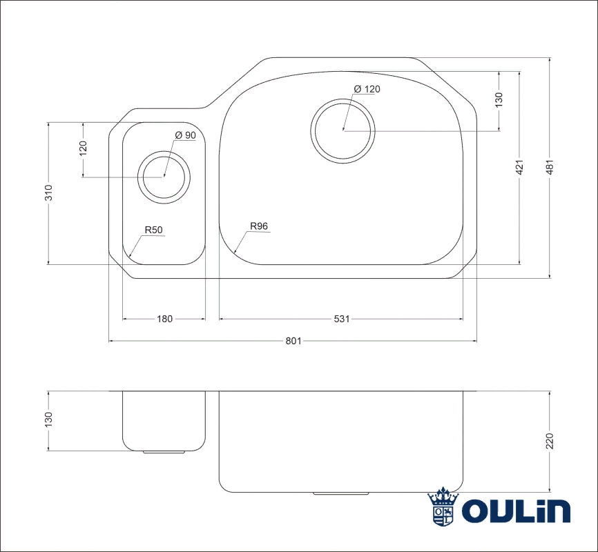 Oulin OL-U601, мойка, нержавеющая сталь сатин