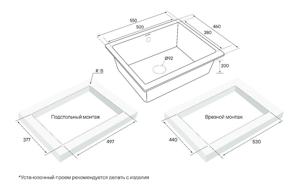 i Расстояние от дна до верхней кромки чаши мойки. Оптимальная глубина — 15-18 см. Чем глубже мойка, тем меньше брызг попадет наружу.